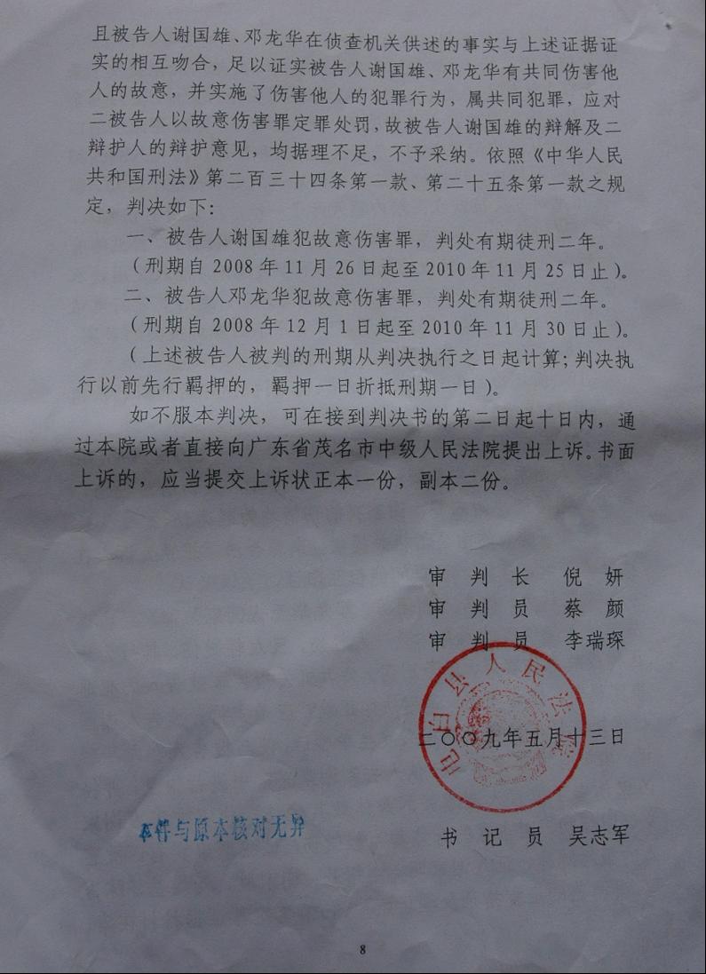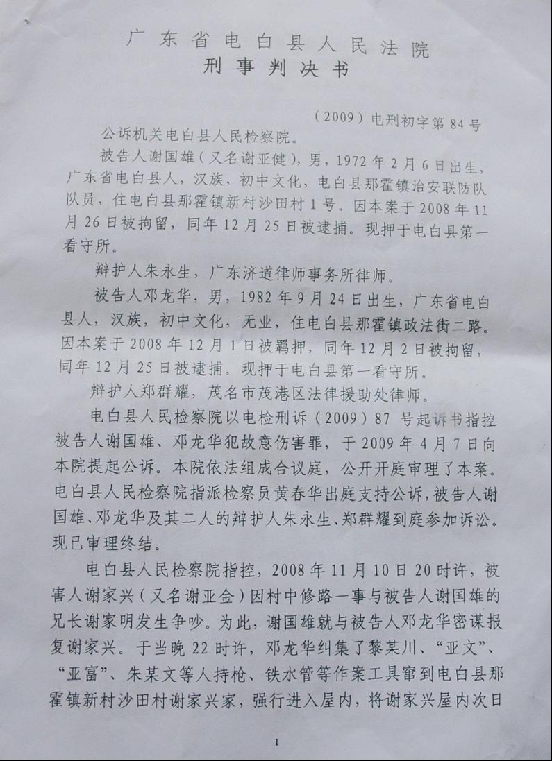 电白法院以“治安故意伤人罪”速结案 “欲无涉枪罪放人”