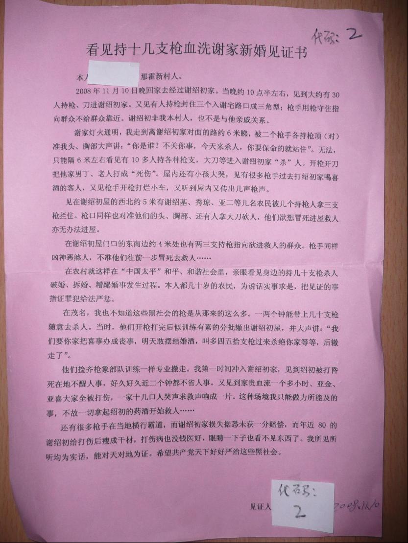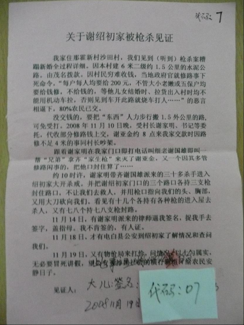 又无奈中受害者再一次请上级机关、法院、检察院、省、中央、网民、律师等支持核实冤情,为民、为谢家申冤。把此事反映盼望网上正义及正义新闻媒体高层政府再次为受害人申冤,多谢。