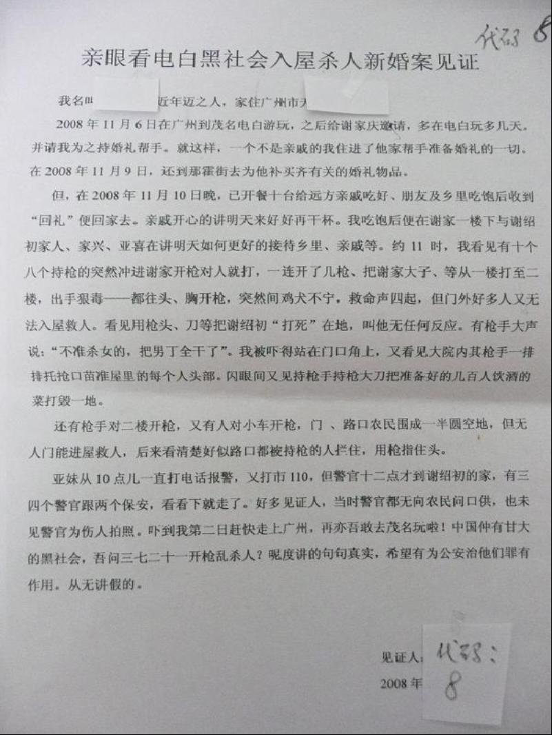 已全国知晓这“大案” 疑犯既能在电白无罪摆平。看来在黑势力下的电白无辜有冤也不申了――。
