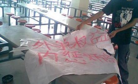 春华学子们,为什么那么懦弱吖!为什么不拿起勇气反抗吖!我们无能吗?我们无谓吗?不是的,因为大家缺少团结吖!