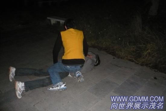 经过:2009年12月30日20时许,一小女孩(约十二岁)因鞋子破了,叫妈妈去帮她买一对新的,(这女孩家开了一间卖内衣内裤的小店铺,妈妈叫她在店铺看店,这就去给她买新的鞋子,就在妈妈离开之后的不久,突然一劫匪冲出一手抢走妈妈交给她钱袋,劫匪把钱袋抢到手后,转身就跑,这女孩既聪明又勇敢立刻起身就跟着劫匪追,她边追边喊,抢劫啊“想让路上的叔叔阿姨帮忙抓劫匪,无奈的是旁边的路人甲乙丙丁没有一个人理会她,就在小女孩最失落之时身后突然出现一个身穿“惠多多超市”工作服的男青年孤身一人冲上劫匪,劫匪看有人追了忙将抢来的钱袋扔掉,身穿“惠多多超市”工作服的男青年继续追,追到公园凉亭边时跃起一个飞脚将劫匪踢倒,劫匪急忙起身与身穿“惠多多超市”工作服的男青年交起手来,劫匪在与男青年交手还不到15分钟,似乎身力不支,就在此时男青年棱空一脚出尽了所有的力气把劫匪打的晕头转向,男青年上前一个反手擒拿制服压在地上。