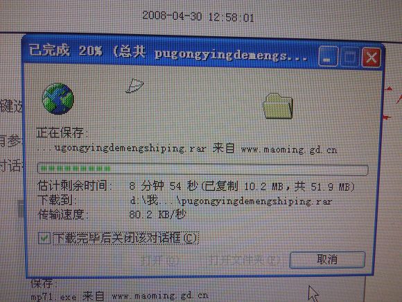 通过茂名信息港的宽带网络测试,(测试过程没开BT软件)得到的结果是: