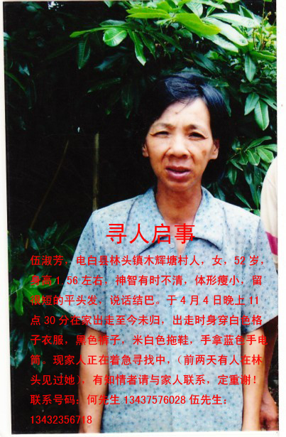 今天听到一个很不好的消息,十几年老同的母亲走失了,知道这事心里很不是滋味。我们虽没有血缘关系,但我们是十几年的同学,如兄弟姐妹般。我身在广州,没能够亲自去寻找,但应该尽自己的心,尽自己的力,如此才能不枉为老同。希望这是虚惊一场,有惊无险。妈妈早日回家……