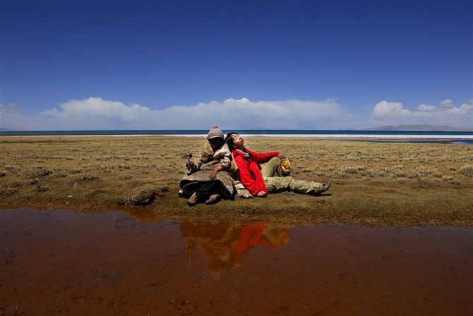 天堂之旅―纳木错 据说纳木错是亚洲最高的湖, 纳木错是藏民心目中的天湖,也是西藏三大圣湖之一,自然错过不了。此次旅行是我唯一一次地跟团, 沿途的风景倒没引起太多的兴趣,因为那一天的所有心绪都放在纳木错了,连念青唐古拉山都匆匆而过。另外我还得坦诚:在车上偶遇了来自辽宁一游客---李洪武,路途上对我特别关照,纳木错的水清澈的令人难以置信。不是说到了西藏人的心灵会得到净化吗?,那就必须要去纳木错呦! 2010年4月22日--我们前往纳木错
