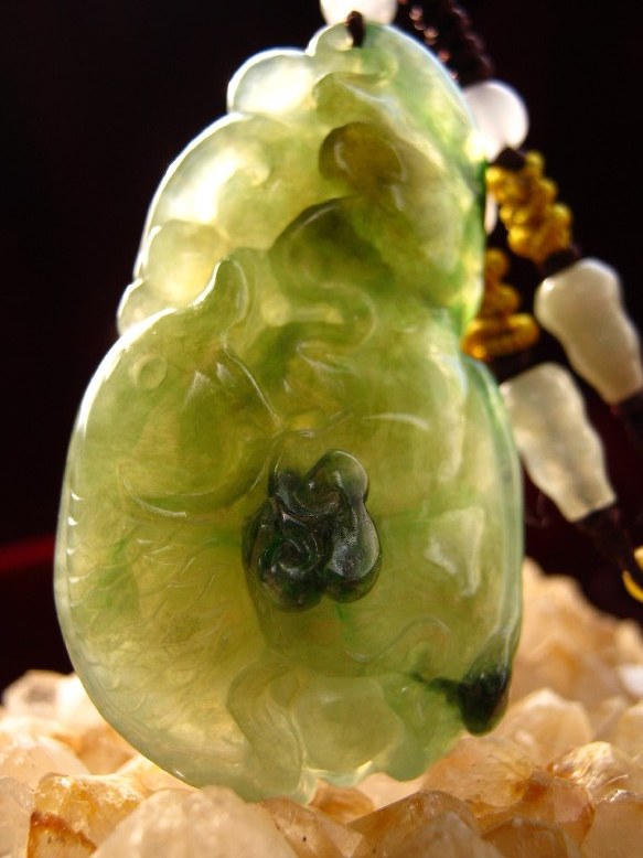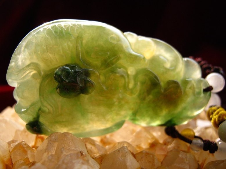 翡翠玉是其它宝石无法比拟的,不但颜色美,而且可以雕琢各种各样的图案来象征:“吉祥如意,平安美丽,健康长寿,幸福美满,富贵发财”等等;也是文化和修养的溶合。