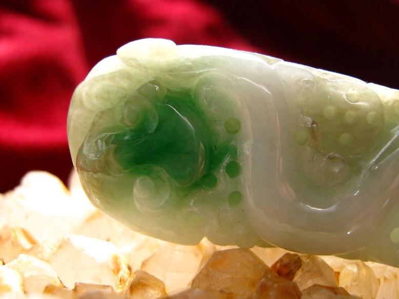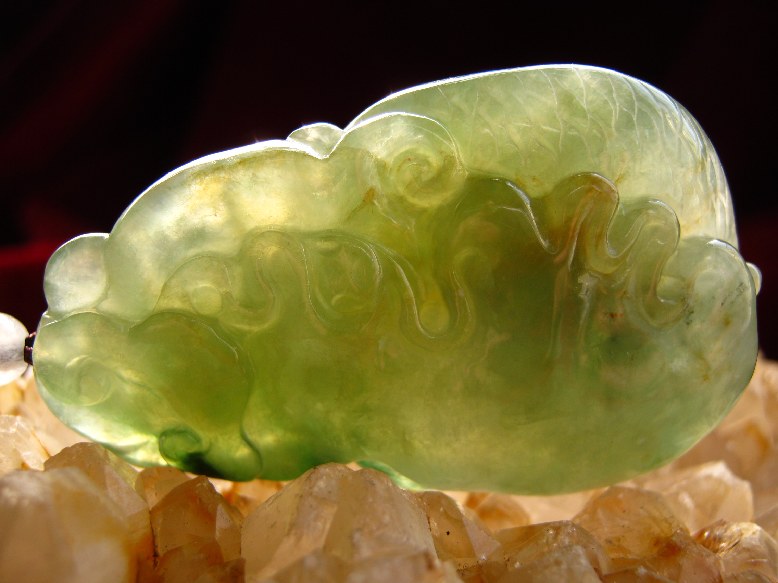 所谓“龙”其实是指翡翠中的绿色。也就是说:在通常情况下,无论在质地的粗细程度或者透明程度上,有绿色的部位比没有绿色的部位?地子?,都要好一些。当然,有时翡翠绿色和地子之间的这种差别表现的过于强烈时,就象下一个格言所说了。狗屎地子出高绿。