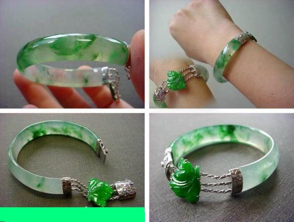 举一件翡翠玉镯为例说明。当玉镯被碰或跌落时,若裂纹不严重,就可以继续佩戴。如果裂纹十分严重或被跌落为两截时,便要视该玉镯的贵重程度,采取金镶玉的方法在断裂口包金或包银来加以处理。如果被跌落为三截或更碎时,则不能用包金或包银来处理。这时,可采取珠宝首饰的改制来处理。若玉镯中有明显的翠绿段(或较大的翠绿点),则可用加工成戒面或吊胆,玉拓辣椒之类的小挂件;无翠绿的,也可用来加工成观音或玉色等。