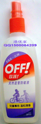 美国第一品牌---f臣,“OFF欧护天然芦荟防蚊液”据说是目前市面上最安全最有效的蚊怕水。安全成份DEET浓度为7%,有效驱走恶蚊,为儿童提供安全护,而且气味清新,清爽舒服。持续效力达2小时,最适合儿童户外游玩时使用。