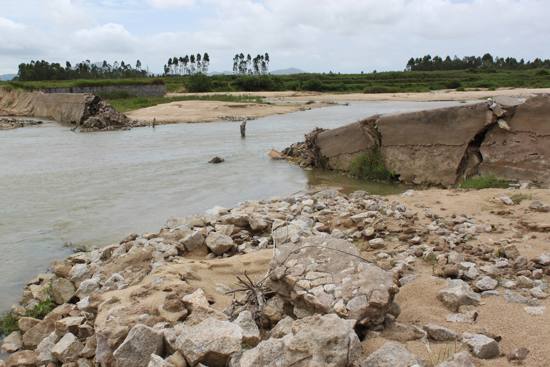 一条由1968年修建的172米长的引水石坝,由水泥山石结构已老化,被09年510洪水冲崩,至今都未有修建,五千五百多亩农田已变成荒坡。几千村民苦叫连天!