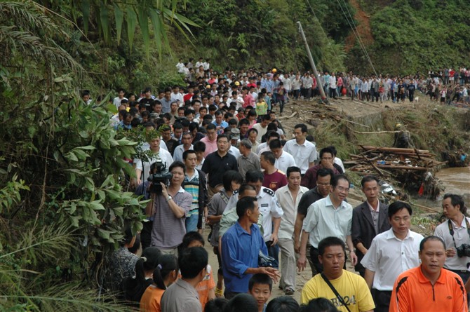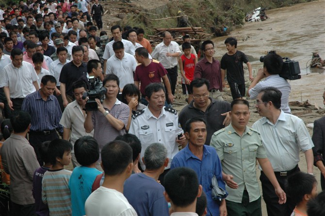 沿河而下的十几个村庄,仅在水口、双合捞起的遇难群众尸体,已有一百多具,而当局却封锁灾情。