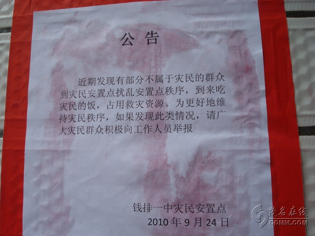 上个台风在阳西登陆,对电白的损害也不少,但听某沿海小镇的朋友说,灾后镇政府派人下村登记台风受损情况时,各家各户都说没有受损,为什么?因为就算上面调拨的救灾物资再多,也没有一件会分发到灾民手中,如其肥了贪官,不如让国家省点。