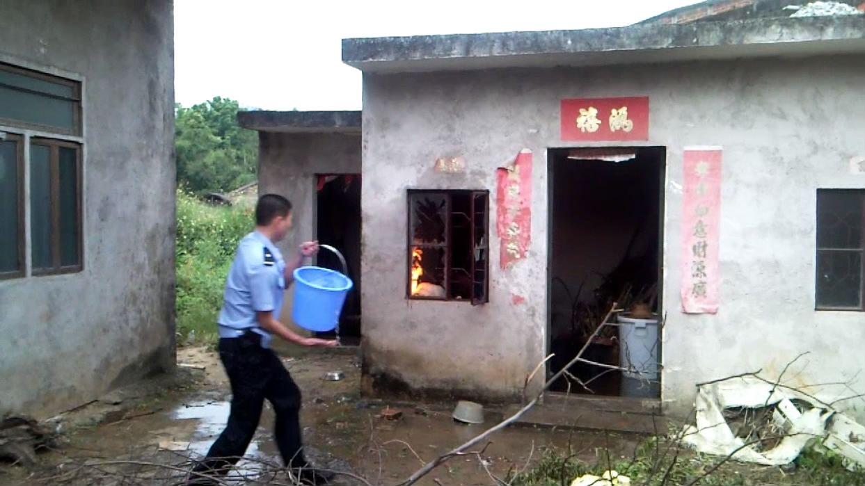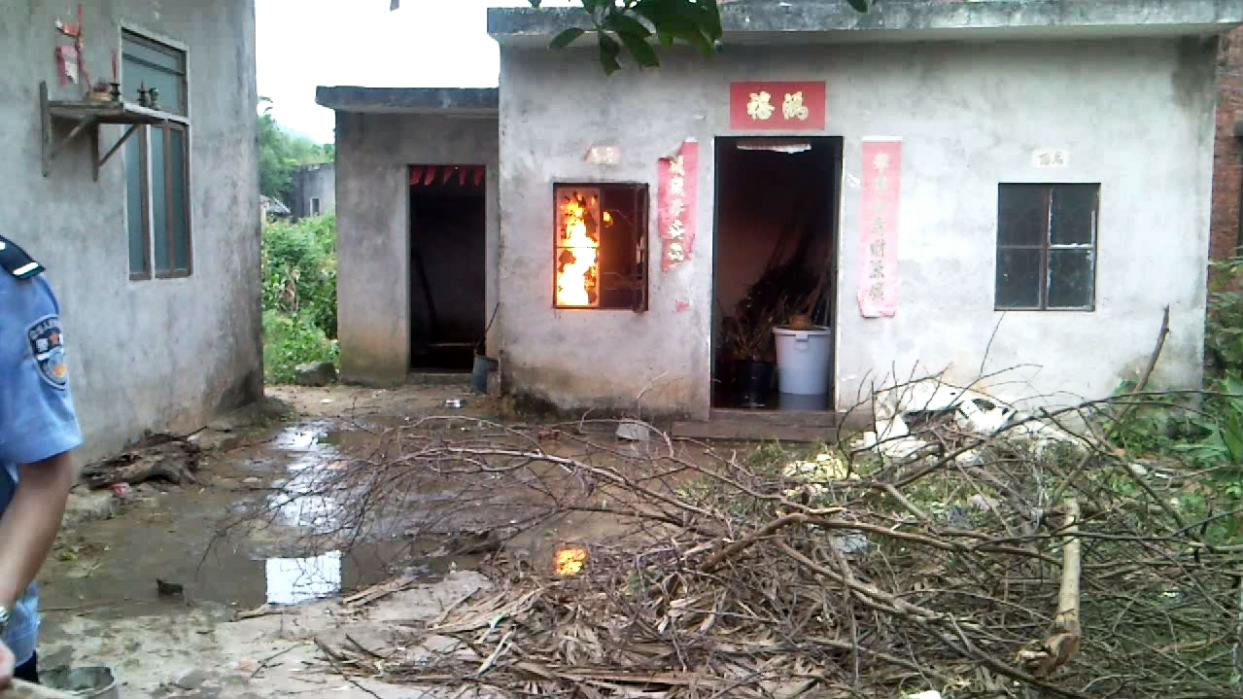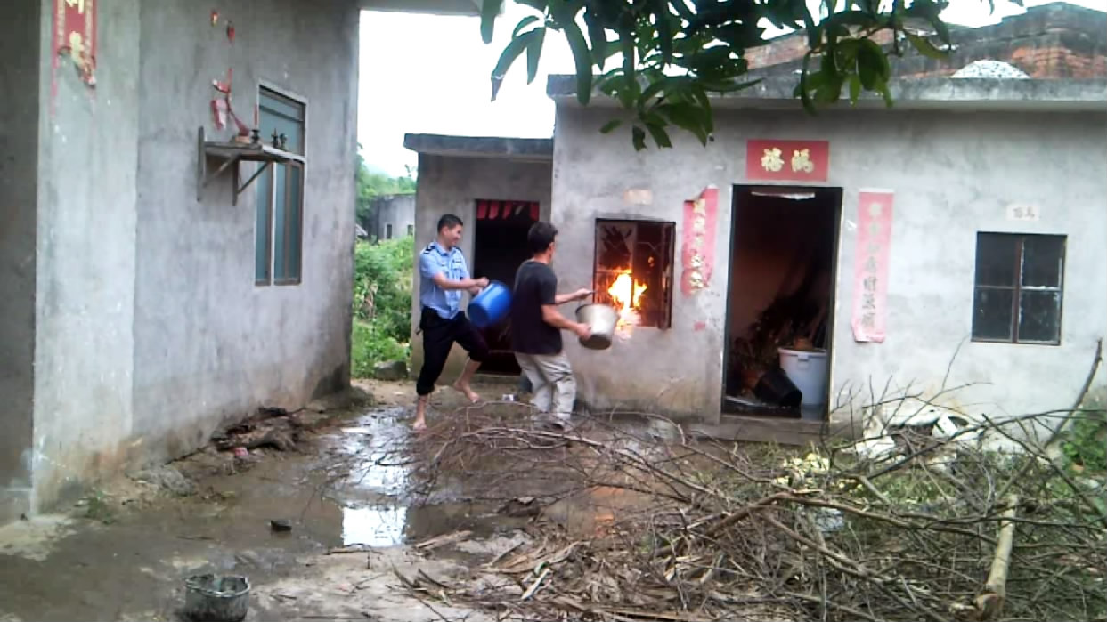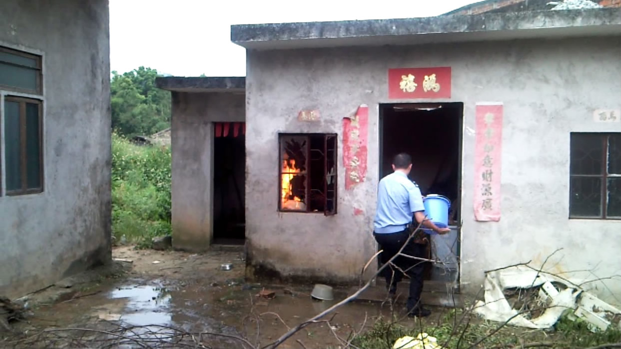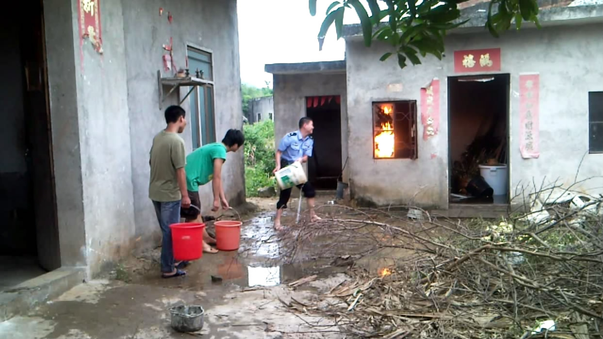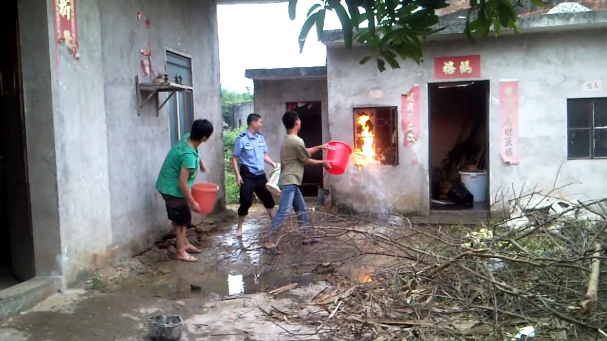 10月3日下午五时许,电城田头张屋村一民宅厨房煤气瓶着火,报了火警后,电城派出所、村民、消防中队一起协力灭火。