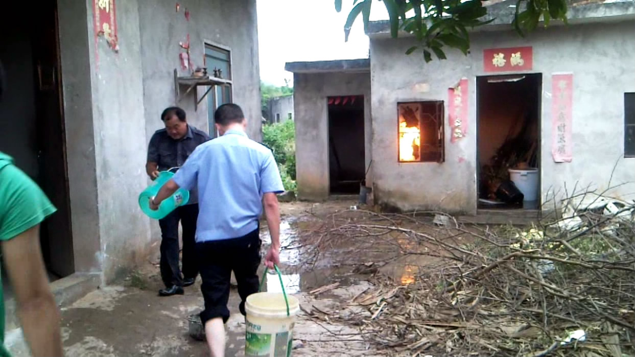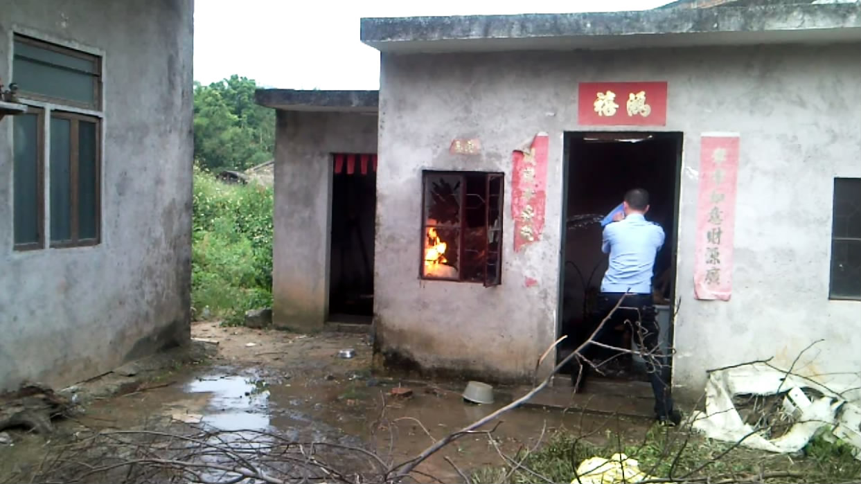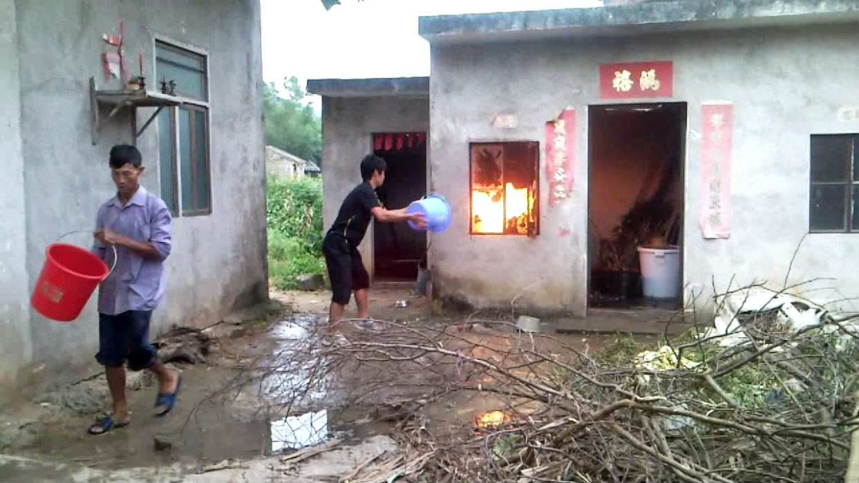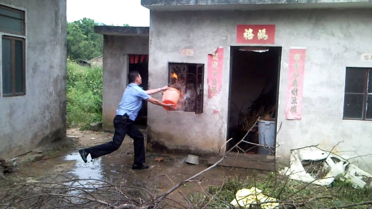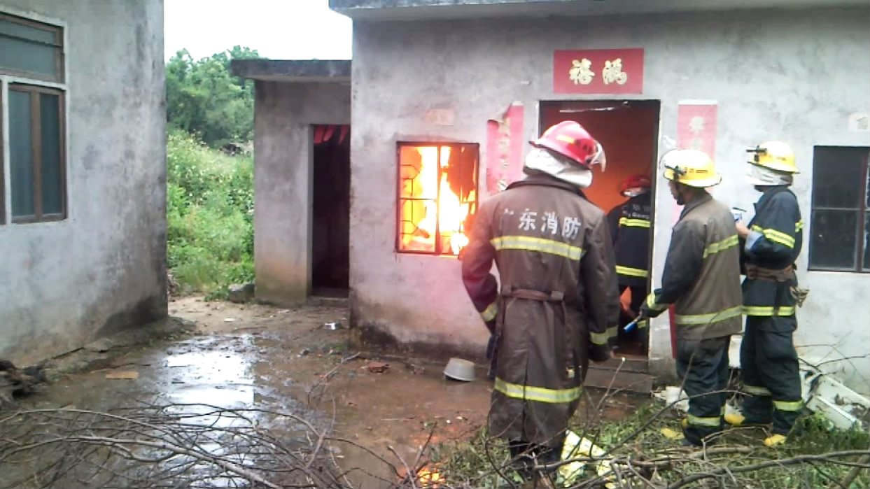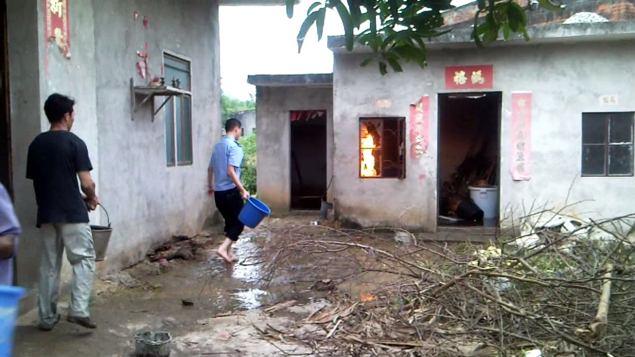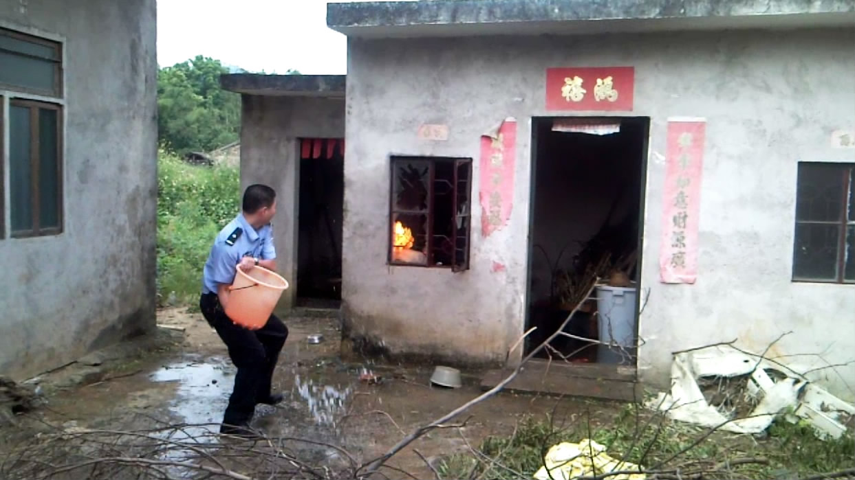 10月3日下午五时许,电城田头张屋村一民宅厨房煤气瓶着火,报了火警后,电城派出所、村民、消防中队一起协力灭火。