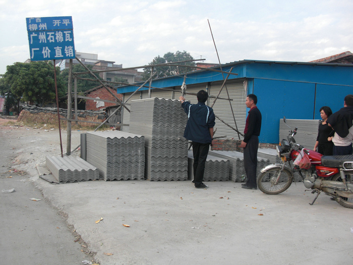 为了修葺厨房顶,在茂名新圩路途中我们顺便了解了石棉瓦的价格,而后我们再三角虚购买,每片13.5元(共购置4片,在安置过程中因不够,我们在电城再购置了四片,售价10元每片)