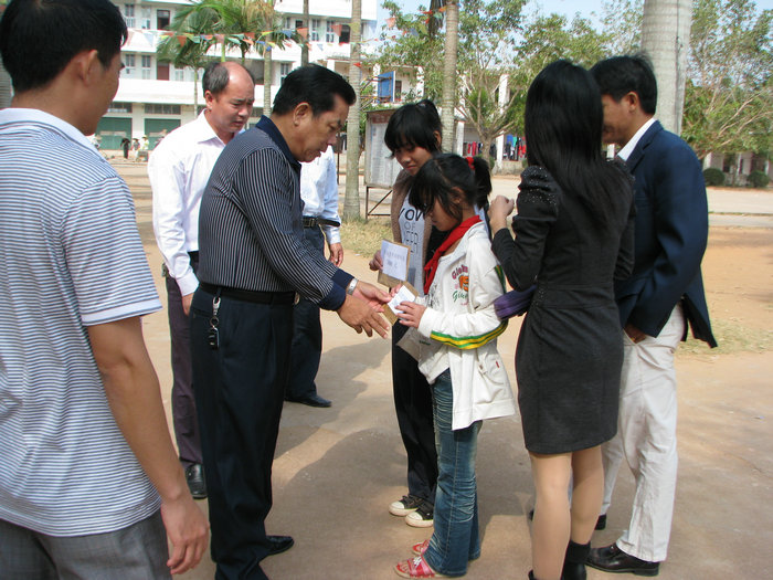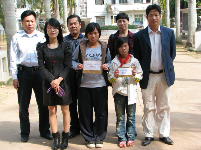 11月18日上午,电白县教育工会主席黄相、工会主任刘晓露受茂名市教育局局长梁永全及电白县教育局局长王业政委托,到爵山中学和电城镇下海小学慰问严明珍、严带娣这对相依为命的姐妹。黄相主席给姐妹俩转达了市局及县局领导的关心,把慰问金(茂名市教育局3000元、电白县教育局2000元)送到她们的手中,并勉励姐妹俩要面对现实,迎难而上,勤奋学习,用优秀的成绩来报答大家的爱心和帮助。为了更好地使用慰问金,教育工会领导和爵山中学刘校长、爵山中心学校领导及下海小学许校长经过讨论决定,把这些慰问金存入严明珍个人存折里,存折暂由其班主任保管监督,以便让她姐妹俩合理使用。黄相主席还表示,教育局今后将会继续支助严明珍姐妹俩,每人每年1000元,直到她们完成义务教育阶段学习。刘校长及中心学校领导商议,准备再次发动全体师生捐款,帮助严明珍姐妹俩度过眼前的难关。