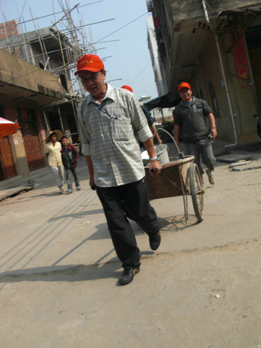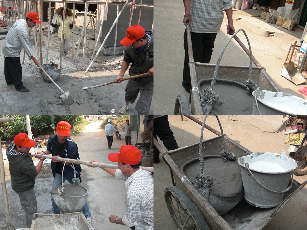 在为沙浆和灰油没法落实而一筹莫展的时候,在下海菜市场旁开大排档的老管区严书记知获,让我们直接到他们家的在建工地直接借取,在此致谢!