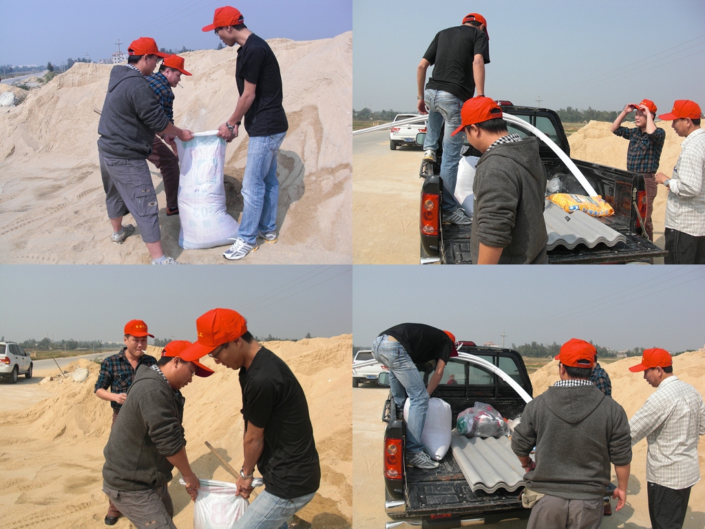 因物资短缺,我们在恒大路口的一沙场,跟沙场负责人借了一包沙,沙场老板知道我们的任务,也很爽快答应了