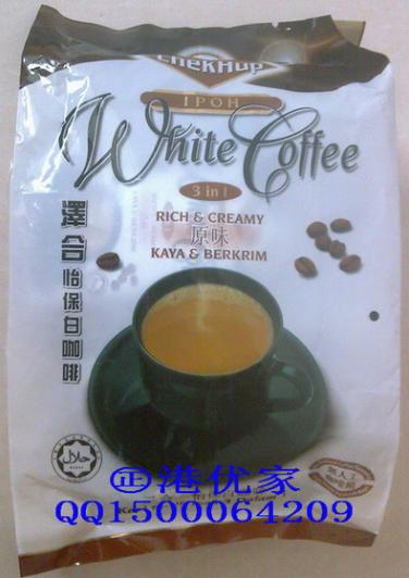 白咖啡是马来西亚的土特产,约有100多年的历史。白咖啡并不是指咖啡的颜色是白色的,而是采用特等Liberica 、Arabica和 Robusta咖啡豆及特级的脱脂奶精原料,经中轻度低温烘培及特殊工艺加工后大量去除咖啡碱,去除高温碳烤所产生的焦苦与酸涩味,将咖啡的苦酸味、咖啡因含量降到最低,不加入任何添加剂来加强味道,甘醇芳香不伤肠胃,保留咖啡原有的色泽和香味,颜色比普通咖啡更清淡柔和,淡淡的奶金黄色,味道纯正,故得名为白咖啡。