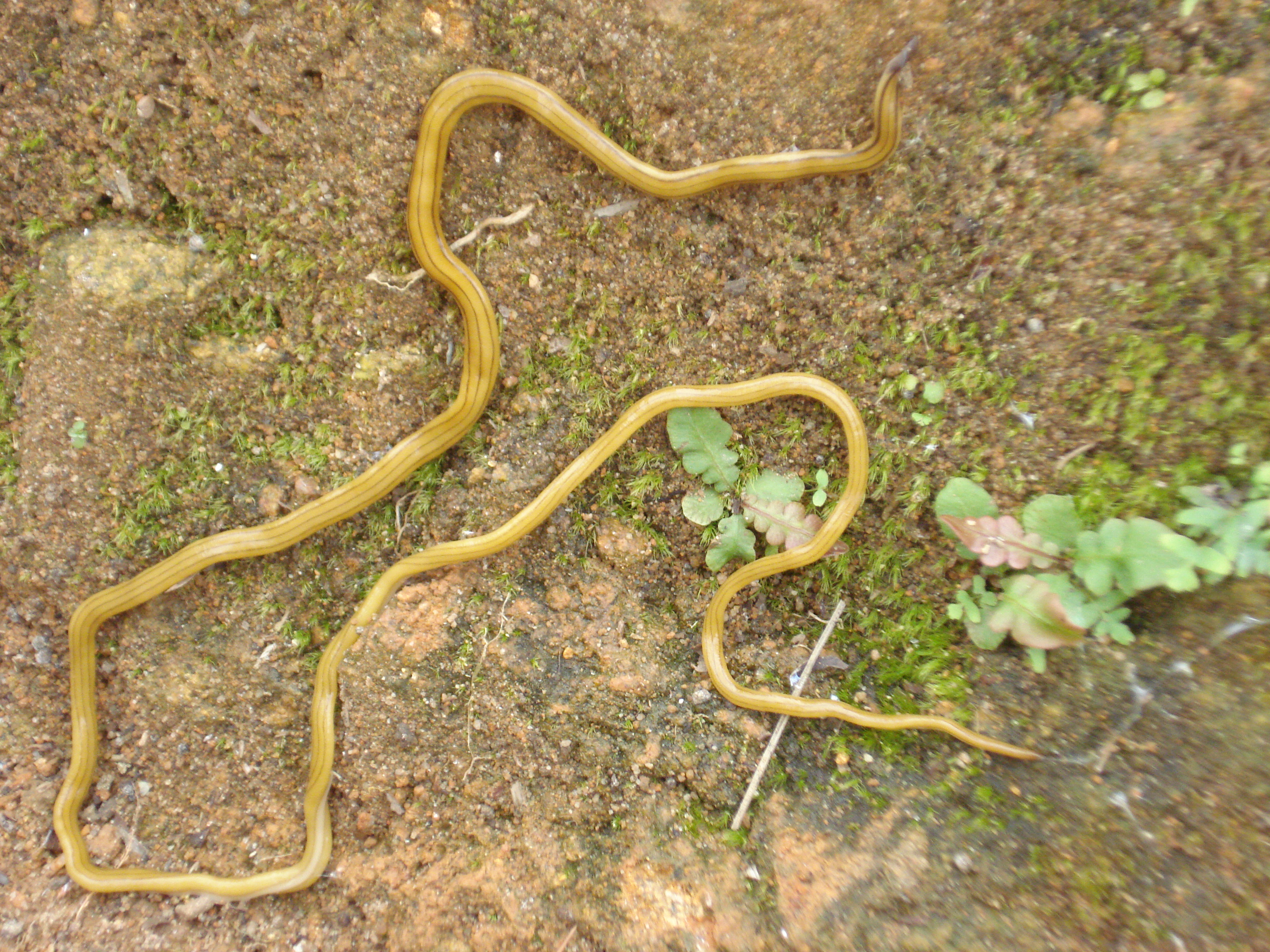 非 非缘是缘 学前班 注册 2010-09-25 消息 33 反馈评分 0 点数 0 2010-12-19 #1 今天去爬山在山上看到的,不知是蛇还是蚯蚓,感觉都不像,它的头是深灰色呈梅花状片型的,也没有眼睛,身体的颜色特别鲜艳,体宽约 5~7mm,体长约300mm。不知道你们有没有见过此类生物,是什么来的? 附件 DSC02724.JPG 2.9 MB · 查看: 490
