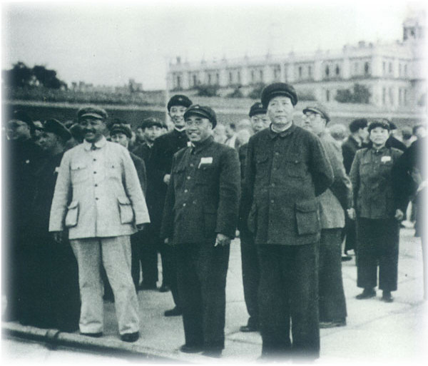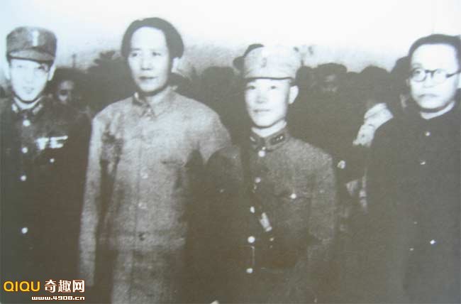 1945年10月11日,毛泽东飞返延安时,在重庆机场与送行的张治中、陈诚、陶行知等合影
