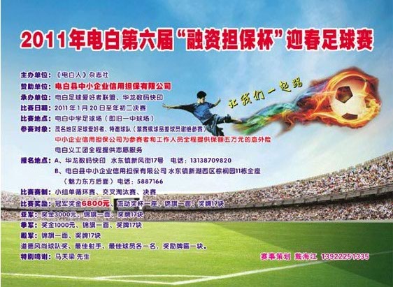 电白球迷联盟祝贺2011年电白第六届“融资担保杯”迎春足球赛圆满成功!!