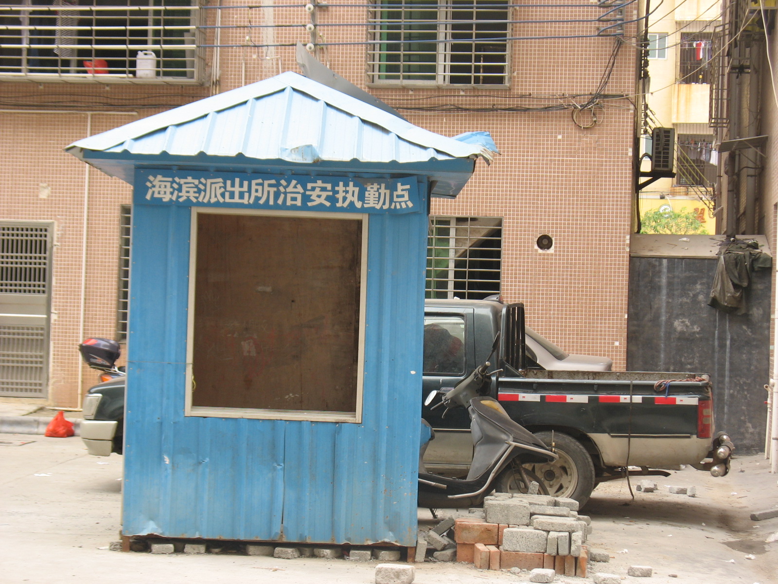 没有任何围墙或者围栏的侧门竟然设置一个保安亭来欺瞒大家!