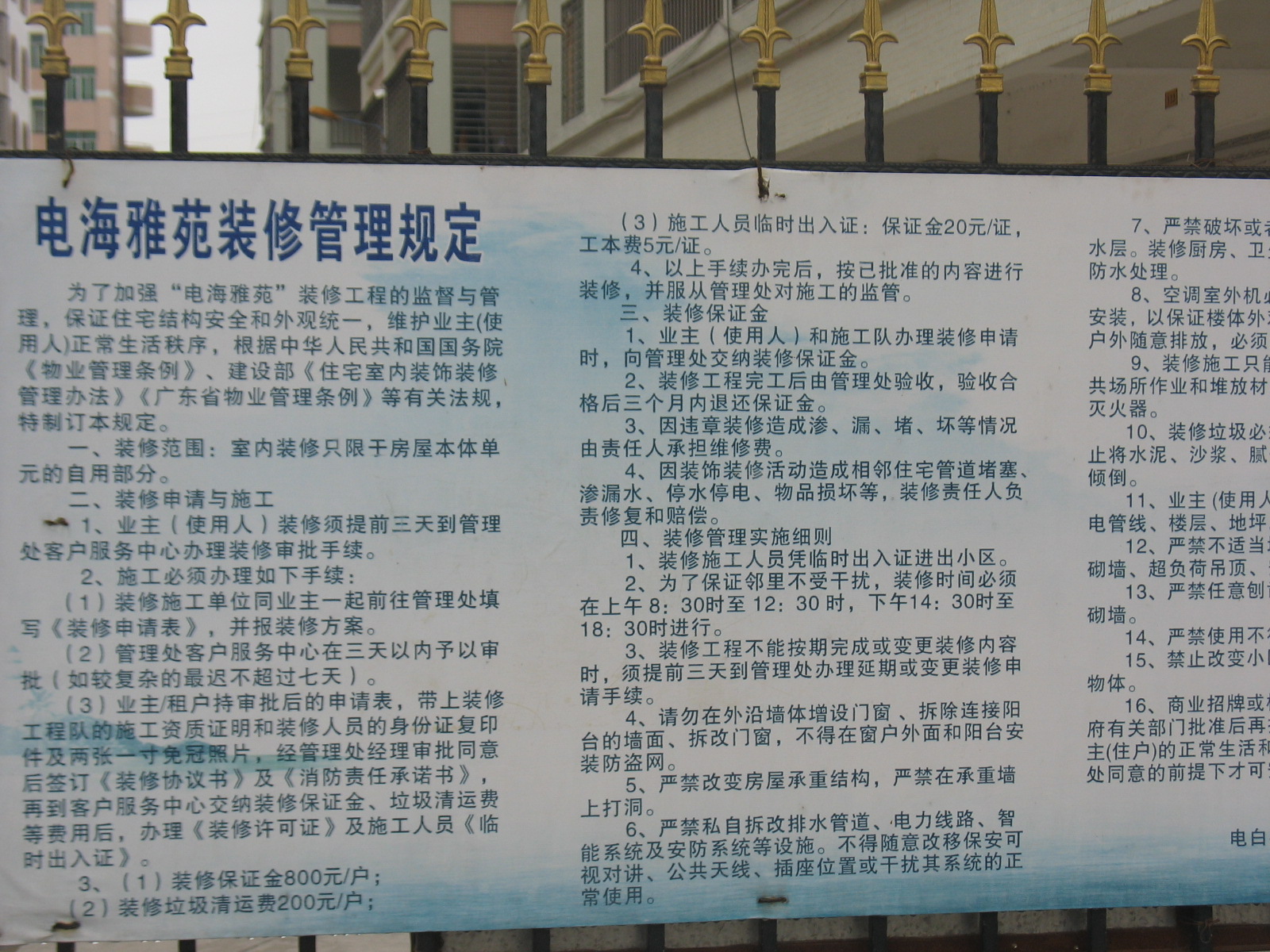 围墙建不起来,小区两头通透,实质如其市政规划的一样,是典型的街道,因而安全问题突出,很多人的摩托被贼子们笑着开走,而当初买了车位的业主们干脆将车位围起来做了封闭的车库,这明显是与报建手续相违背的,极为严重的阻碍了三四栋业主们的出入交通,也违反了《消防法》,是人神共愤的不法行为,但是,某些有车位的业主竟公然叫嚣:“老子有钱买车库,也有本事横行霸道!”其中,最嚣张的就是电海中学的主任李启章的老婆,以为自己是公安局的职工,天下唯她最大似的,身为执法部门的人员,竟然公开搞违建,请公安部门查实,对之进行必要的批评教育,限令其及时纠正错误,免得其败坏公安局的名声,免得其一再强奸党纪国法!