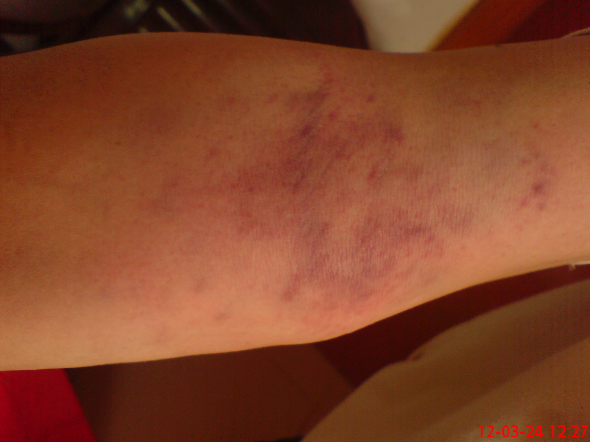 [attachmentid=293519] [attachmentid=293520] 今晚帮位学生拍打的成绩,当我接触到她手时就感觉到很冷,因时间关系只帮她拍打了一个上手臂,看看这痧毒颜色,还起了个大包,谁会想到是一位17岁女孩子,才拍上几分钟手掌、手指上的冷汗就在流了,寒气重到不敢想象