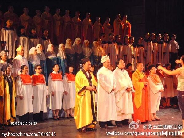 然而,这样的现象,在中国很少存在(少而已,并非没有),尤其到了二零一一年,淮安各大门派齐集大礼堂,唱出一首首激动人心的盛世欢歌。那份和谐,安全可以放到世界宗教史上作为各大宗教完全可以和谐相处的例证。前提是,有一个坚强组织做领导。