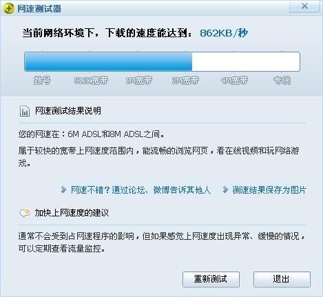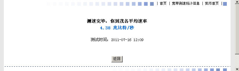 幸 幸福之家 幼儿园 注册 2007-09-03 消息 12 反馈评分 1 点数 0 2011-07-15 #1 看一下电信4M的网速有多快 附件 我的网速测试结果.jpg 34.1 KB · 查看: 345