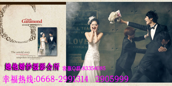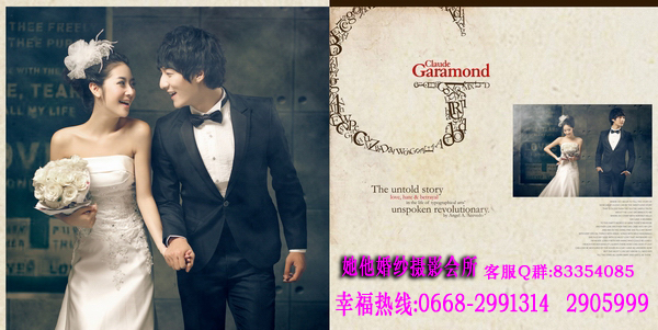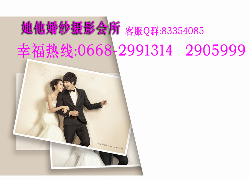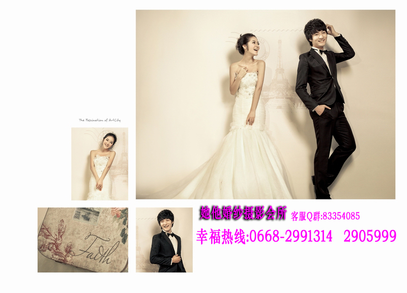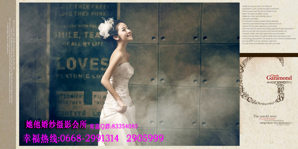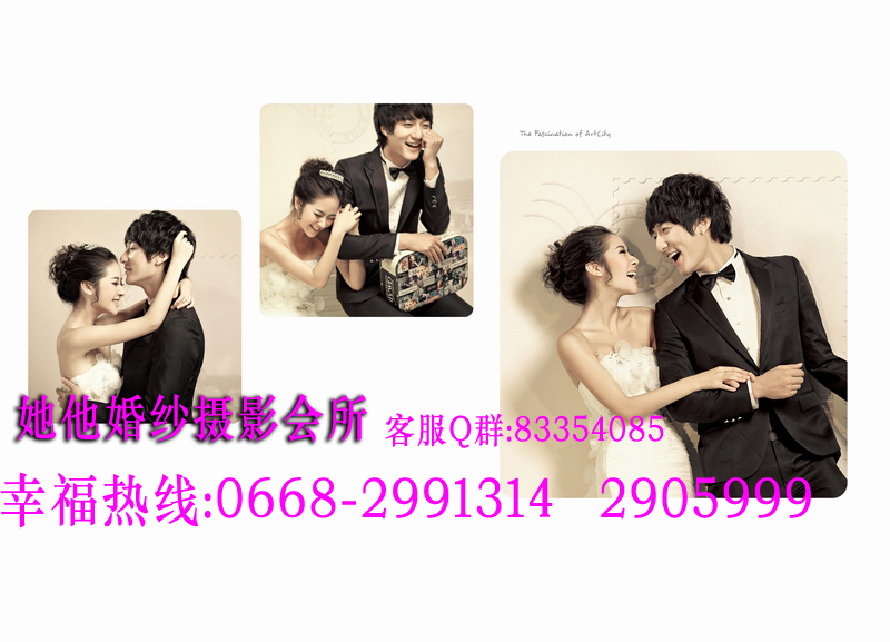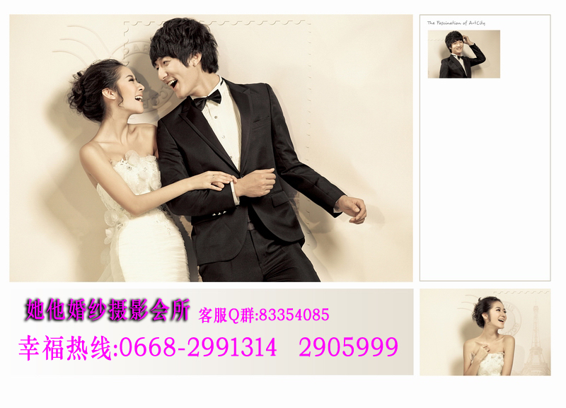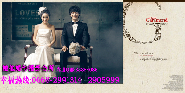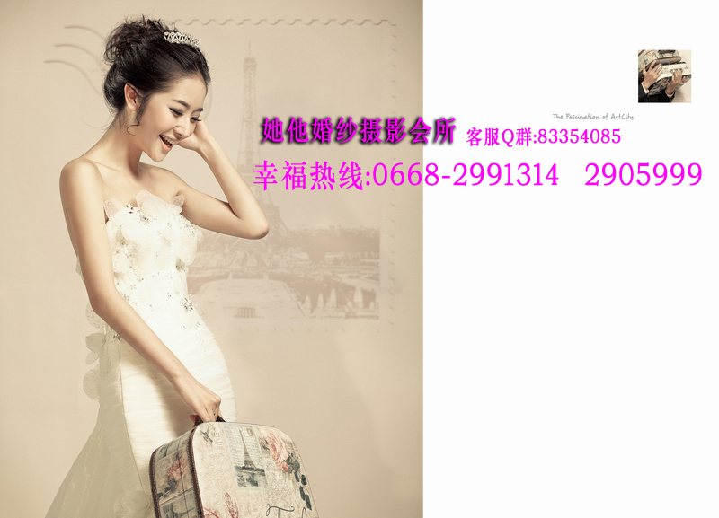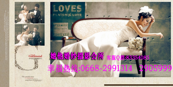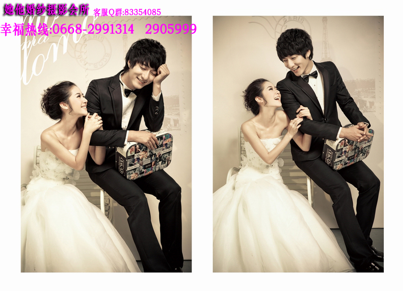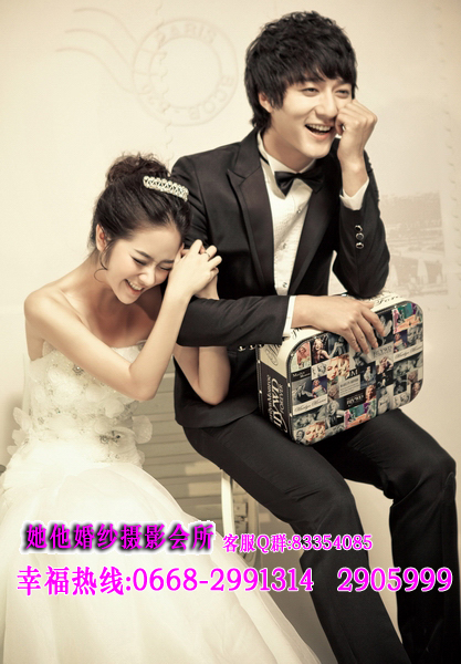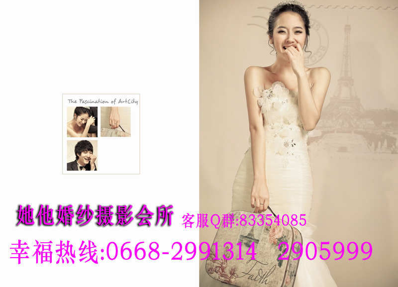 仅128元享368元她他婚纱摄影韩版个人写真套餐!店外附近街景和室内50个镜头以上+衣服(2+1自带)+3个造型(不含假睫毛)+时尚饰品搭配+12张底片+10寸韩式台架一幅+韩国水晶多功能相册(入12P)+荷包相2张+光盘一张(原底12张)