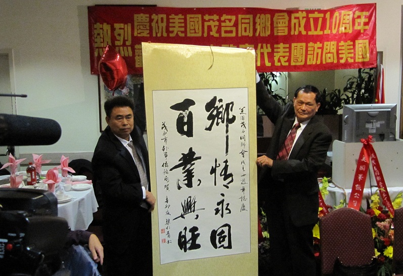 美国S界昨晚e行盛大庆祝茂名同乡会成立十周年晚会。除了我和论坛的Strong大哥,还有来自水东,沙院,小良和七迳的电白和茂港的同乡,其它大部分人士都是来自高州的宗亲。