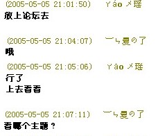 ㄚáoメρ 呱呱..鹕倒..! 荣誉会员 注册 2004-12-04 消息 38,852 反馈评分 0 点数 61 年龄 37 2005-05-06 #5 聊天记录~剪影下来的 附件 {3C05B581-21AE-4A83-8DAC-DFF47FE88EDE}0.jpg 13.3 KB · 查看: 326