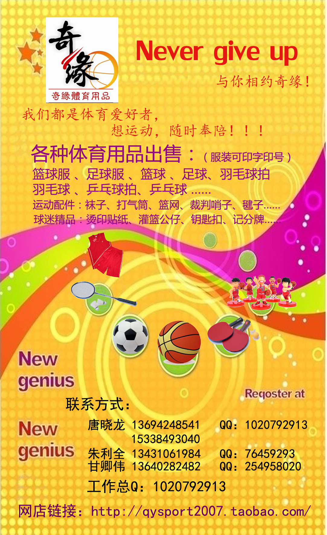 小の壹 小学六年级 注册 2005-04-16 消息 374 反馈评分 0 点数 1 年龄 39 2011-09-25 #1 奇缘体育用品店.新开张,更多优惠.欢迎来本店选购.地址:水东镇澄波街(电白一小隔壁)113号(牛腩贵正对面). 附件 宣2-4奇缘.jpg 1.4 MB · 查看: 326