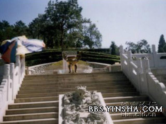 整个坟墓气势恢宏,令人叹为观止。在每个平台两侧,均分设3条阶梯通道,两边循环相通,平台下有的还设有地下室。更绝的是,坟墓的所有护栏,均是经精工雕琢布满龙凤的花岗岩石刻。每个平台均用大块淡绿或灰白的优质大理石镶嵌,平台两侧又各置一怒目口含滚珠的醒狮。