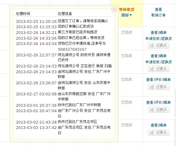 随心而行 小学三年级 注册 2006-02-20 消息 232 反馈评分 2 点数 1 2013-03-05 #12 垃圾申通,我买的东西3号已到电白了,现在还没送到我手上。 附件 申通.jpg 87.8 KB · 查看: 99