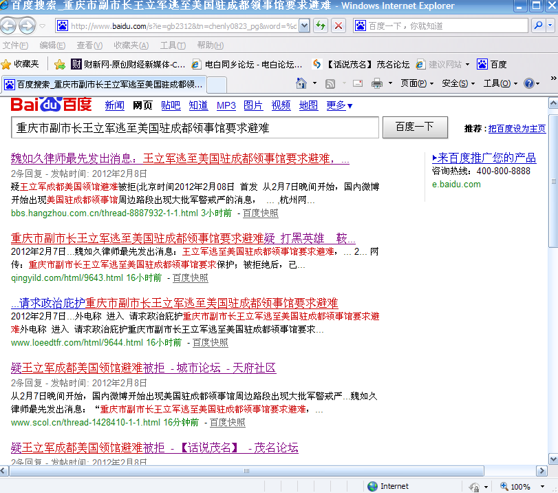 在百度“重庆市副市长王立军逃至美国驻成都领事馆要求避难”找到相关结果约7,840个