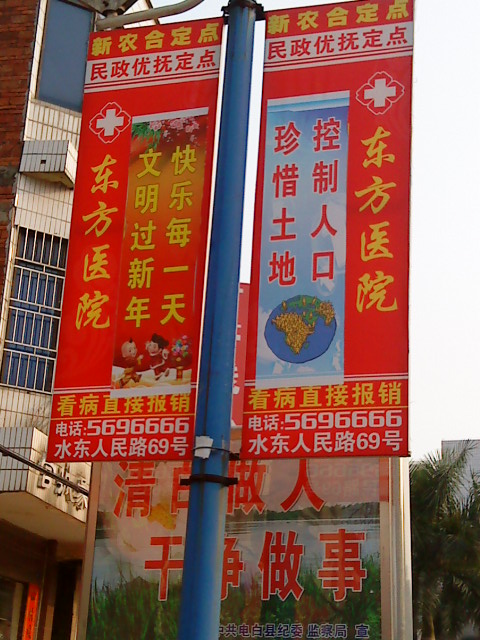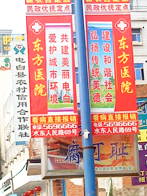 水东的路灯杆都几乎挂满了什么东方医院的广告,真舍得下重本了,但羊毛出在羊身上,你懂得。。