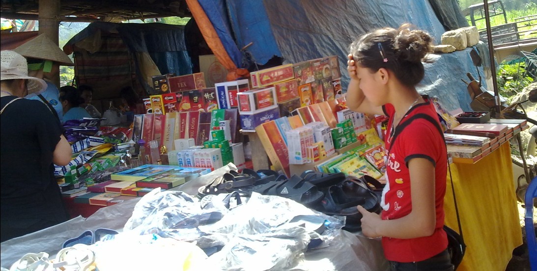 买越南妇女的B货,5元一瓶的老虎油,太贵了,老实说10元可以买4瓶。 后来在陆路买了A货才8元一瓶。 界碑旁有越方小市场。几个越南未成年小姑娘,好漂亮,真想弄回来当女儿养。 有个小姑娘,还读小学的吧,老不肯给我拍照,死活终于给我拍了一张。