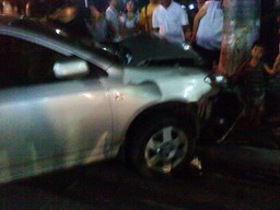 应该是酒驾的。我爸散步经过,回到家就给我打了电话了。说司机很大的酒味。在惠附近应该是第一现场,说好象是死人了。到东胡角的位置又撞了一家3口的摩托,小孩受伤。(我爸叫我少开车带小孩出东胡啦)说是报警40多分钟还没见警察到场处理。司机自己从车上爬下来。很大的酒味,也没人拦他就睡死在路边了。