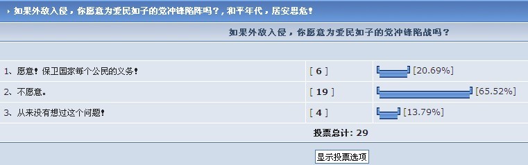 如果外敌入侵,你愿意为爱民如子的党冲锋陷阵吗?