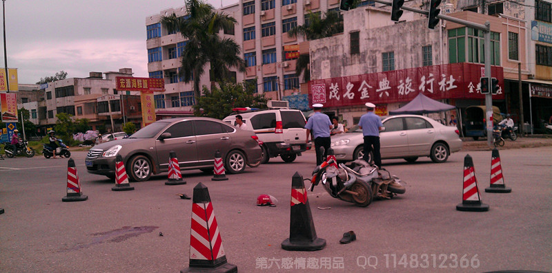 今天,即7月5日 15:00 左右,路过开发区时见到这个车祸。 红绿灯处的路口交汇处,一辆受损严重的摩托倒在地上,怀疑有肇事车辆逃跑. 见图:一辆女装摩托倒在地,男式的皮鞋,一个头盔,一大滩血迹. 补充:近日,茂名十二中有三位学生开摩托飞得太快,把一位老伯撞死,然后逃逸,最后还是被查到。现在事情未能有个结果。