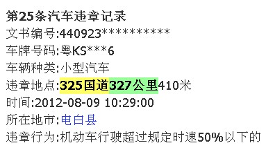 交通违法查询结果