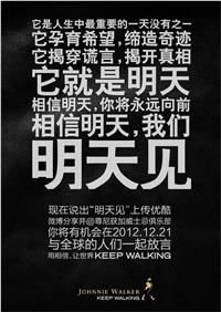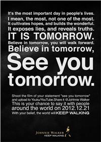 SHANGHAI - Johnnie Walker's latest tactical campaign is centred on a denouncement of the supposed Mayan prophecy that the world will end today, and a proclamation that the world will keep walking.