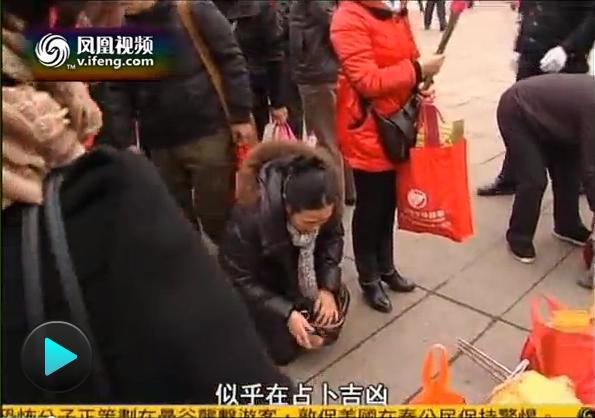 游客在毛泽东像前占卦问卜
