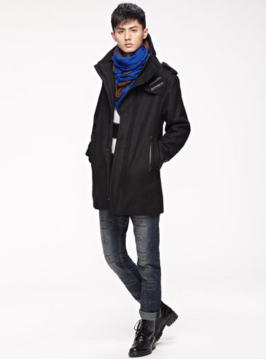雅痞风多用领修身毛呢大衣 黑蓝色389元