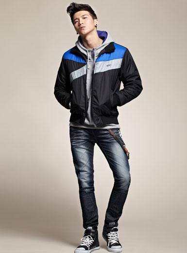 时尚运动双层加厚保暖舒适拼撞立领男棉夹克 黑色98元