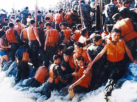 在老毛“人定胜天”(因为,人类在大自然灾害面前是很渺小的)的错误思想指导下,1969年7月28日,牛田洋生产建设兵团官兵用身体去挡汹涌的台风潮水,共造成83名大学生和470名解放军官兵,在抗击不可抵御的强台风大海潮中丧生。最后,那条大堤还是没有保住。