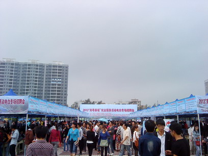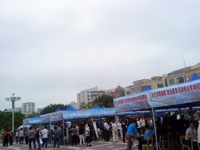 一阵风的,都是什么酒店啊,KTV啊,房地产啊,旅游景点那些来招聘,2点就结束了,没几个人,搞搞形式罢了,没见过招聘会这么快的,没开始就结束,ZF就是在作秀,浪费人力物力,一般闲的人在那里坐着(非招聘企业)