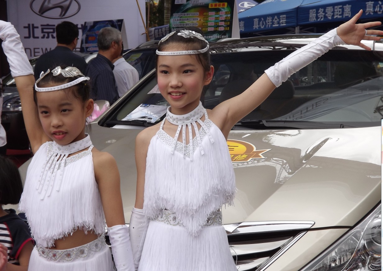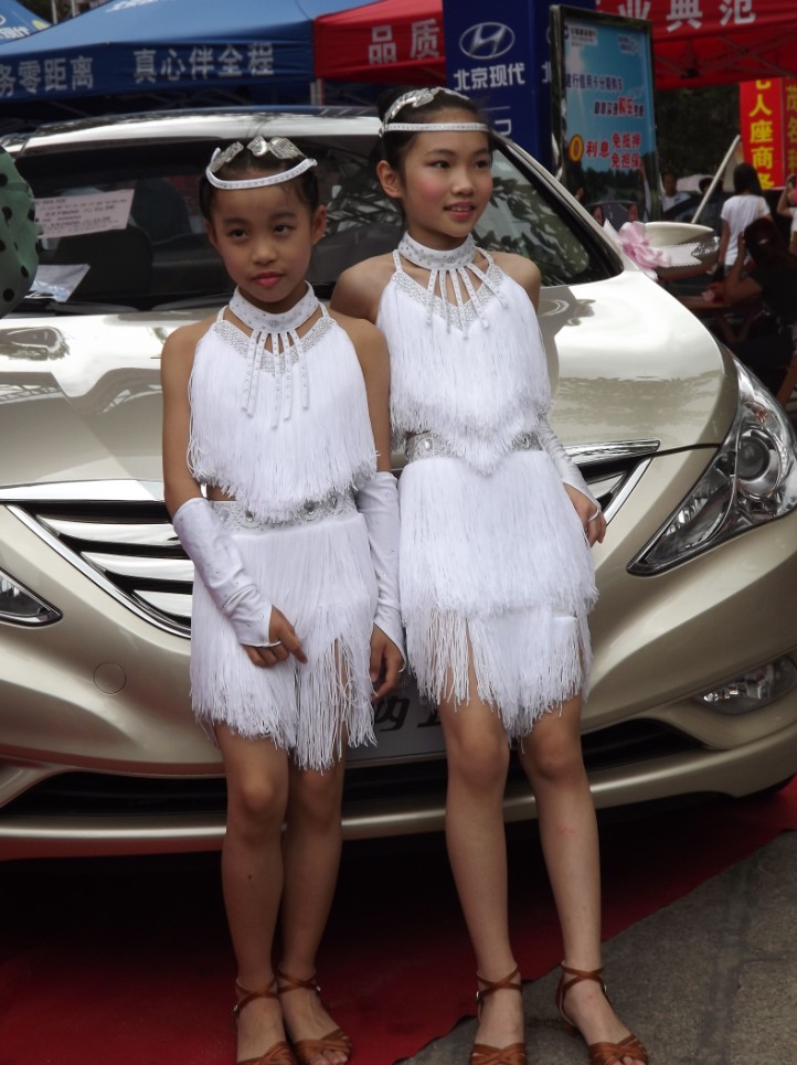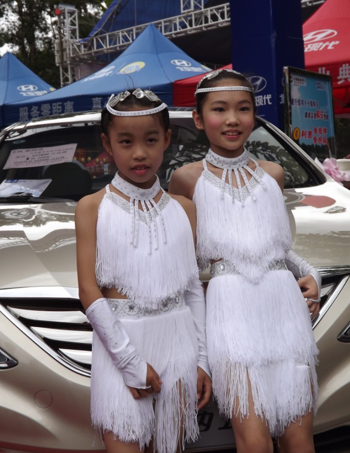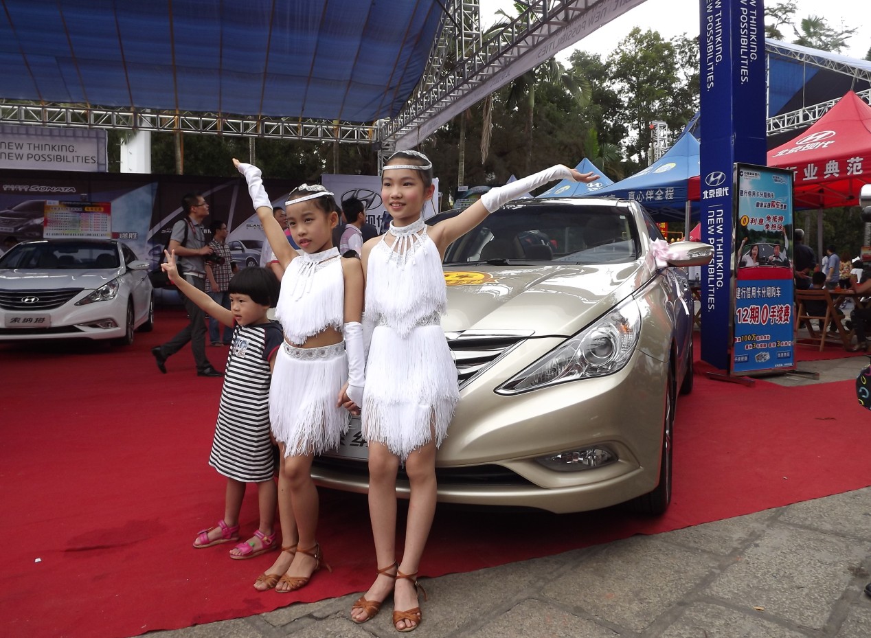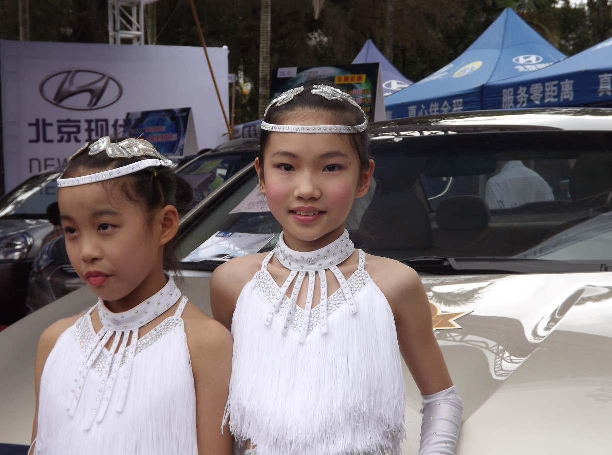 这几位小美女,是跟着妈妈来看车展的.